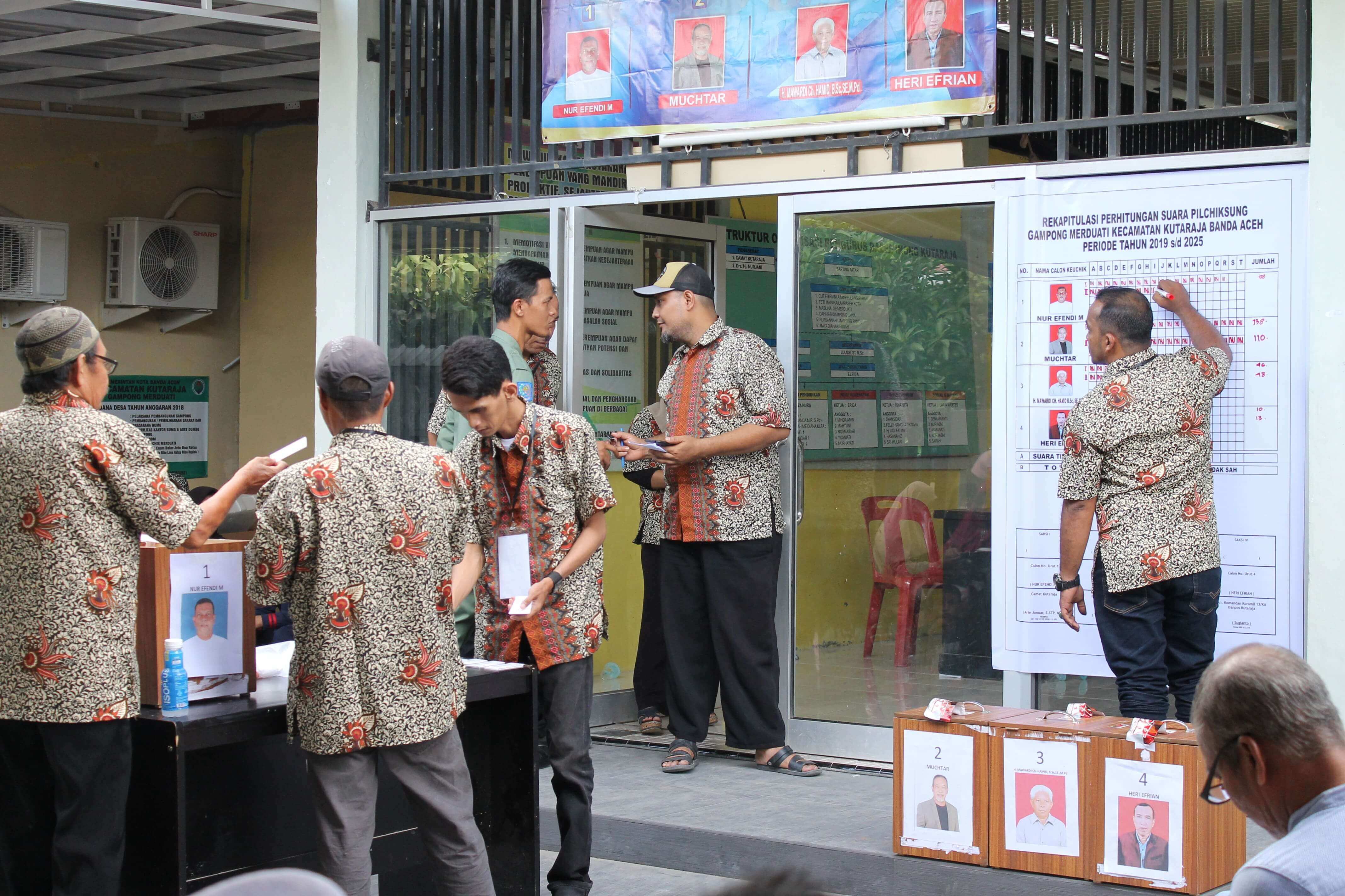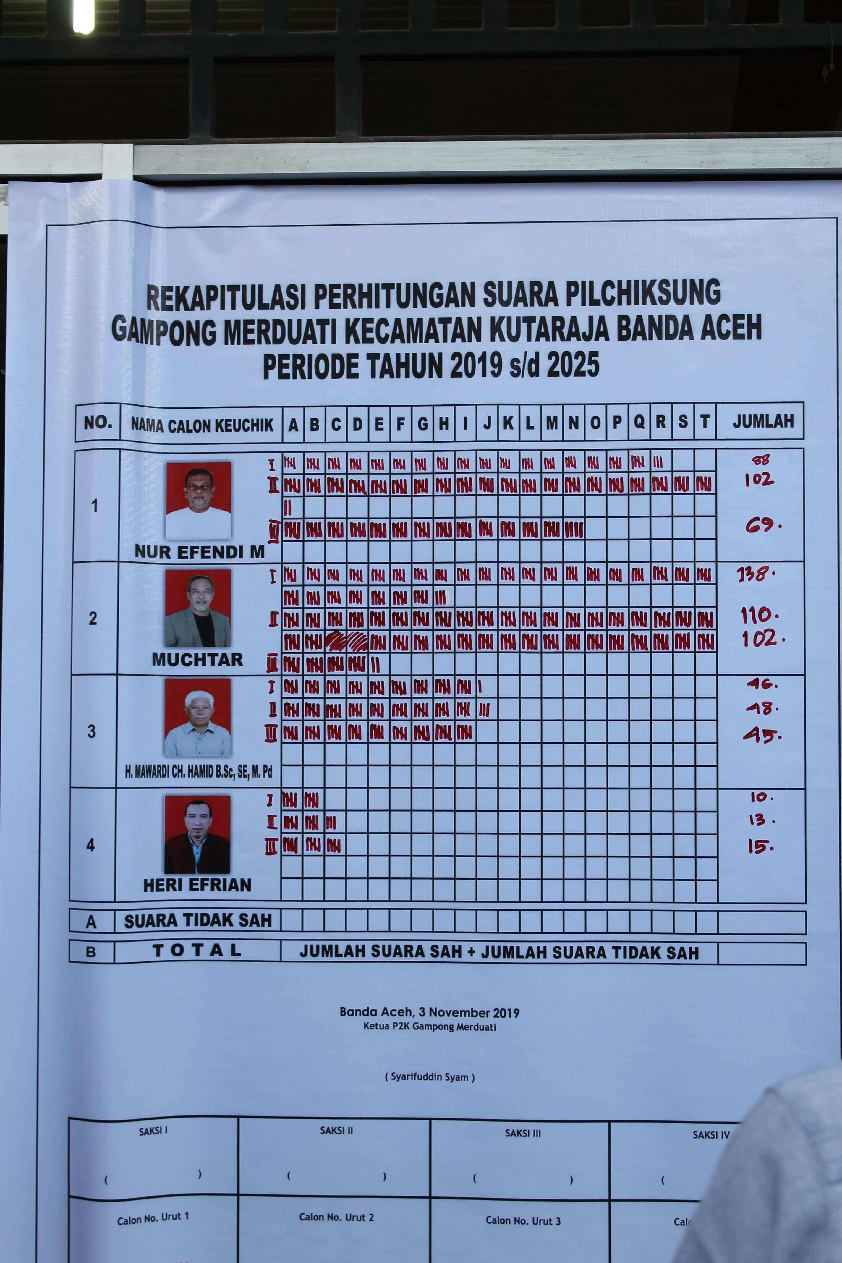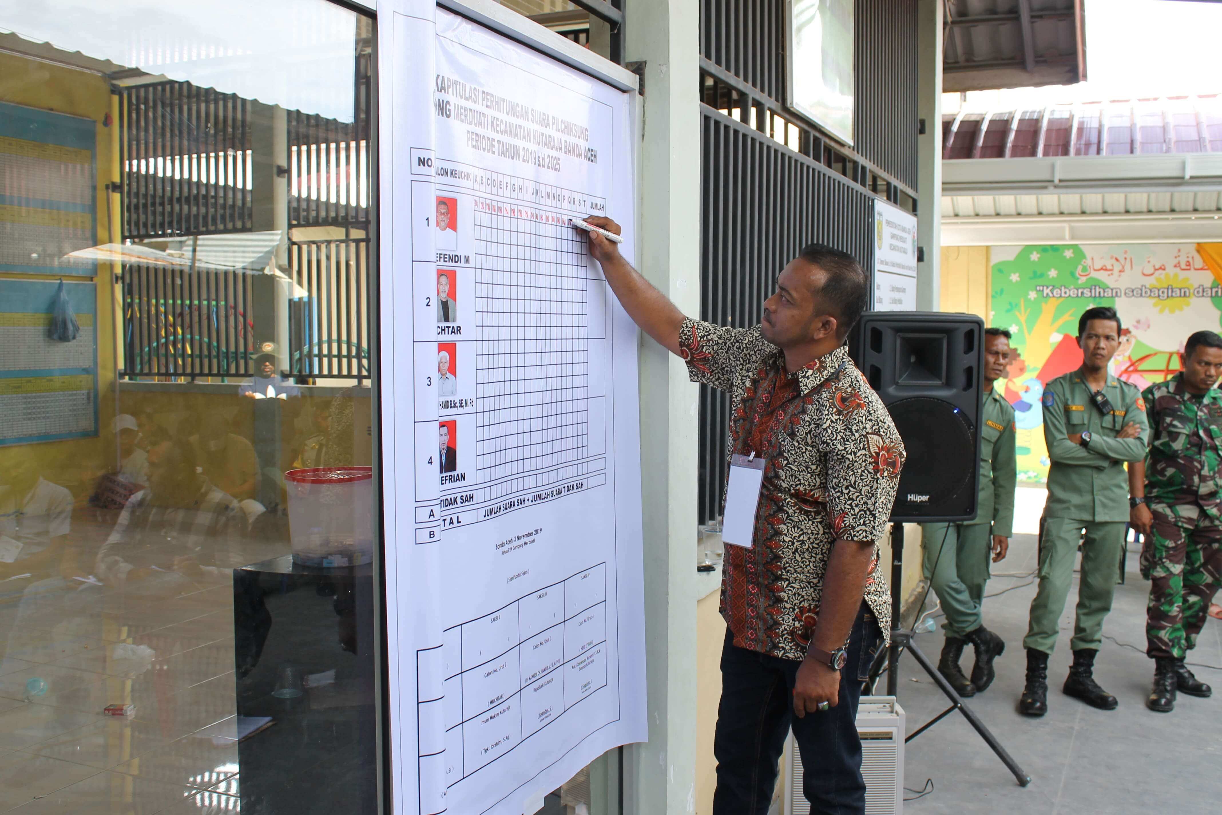 Pilchiksung telah dilaksanakan di Gampong Merduati, Kecamatan Kutaraja Kota Banda Aceh dengan Perolehan suara tertinggi oleh calon nomor 2 Bapak Muchtar dengan total 350 suara pada hari Minggu tanggal 3 November 2019