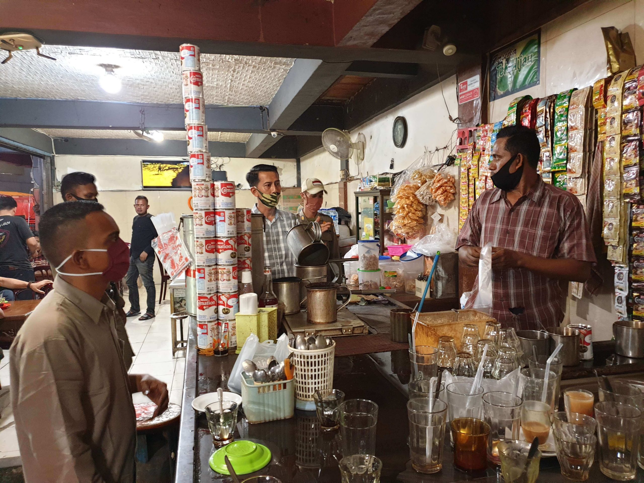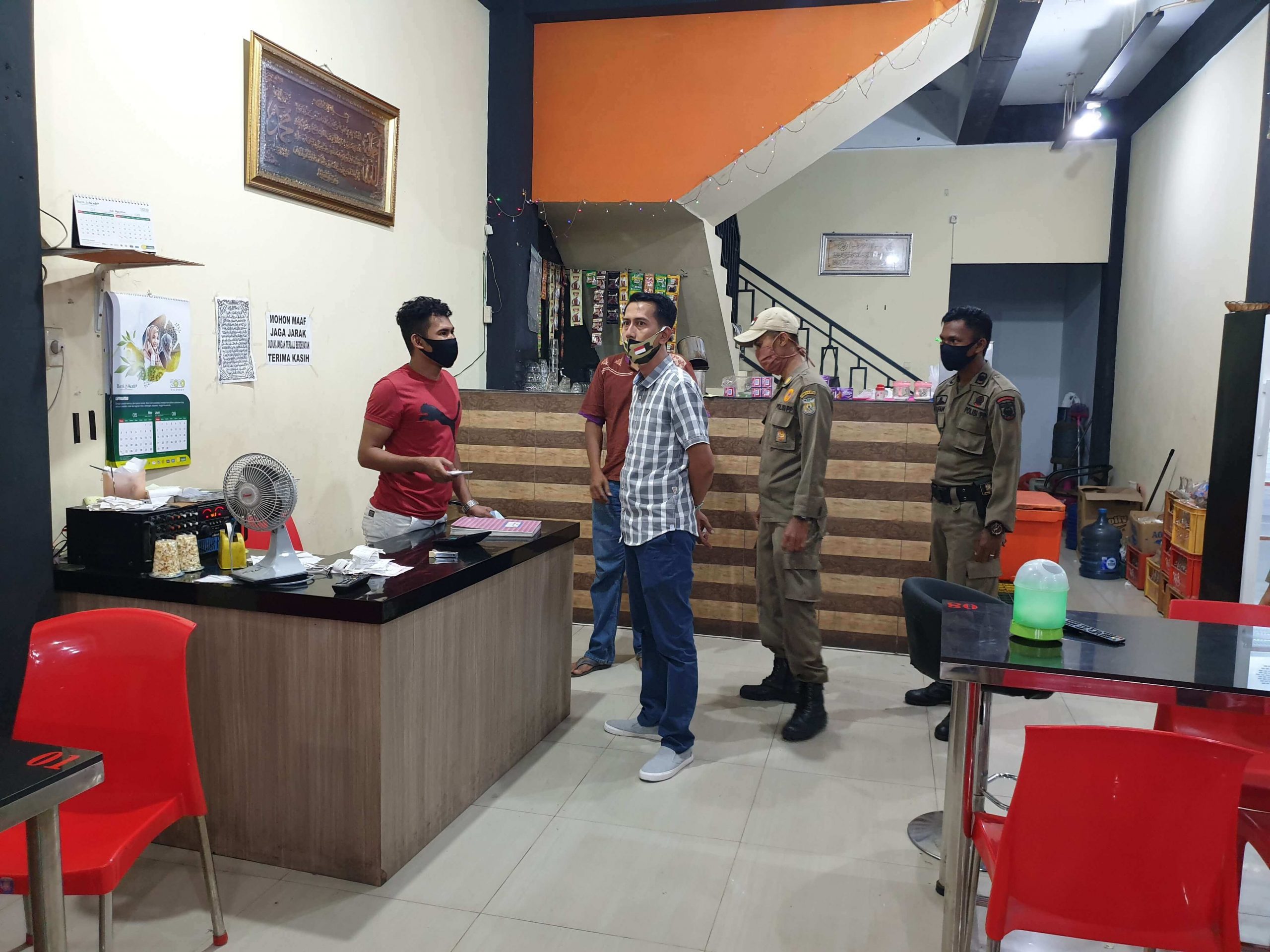Banda Aceh – Camat Kutaraja bersama Muspika Kutaraja, Muhtasib dan perangkat gampong telah melakukan razia pemantauan, pengawasan dan penertiban untuk meminimalisir penyebaran wabah COVID-19 di cafe dan warkop dalam wilayah Kecamatan Kutaraja pada hari Rabu tanggal 08 Juli 2020 pukul 22:00 WIB s.d Selesai.